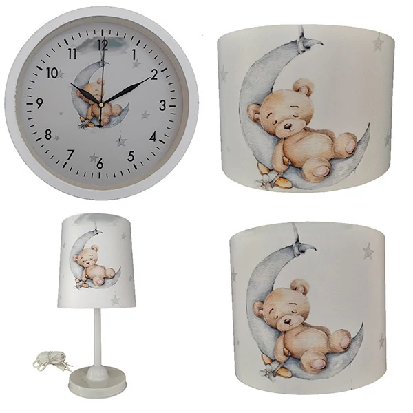لوستر و آباژور کودک مدل خرس کد 40225 به همراه چراغ خواب و ساعت مجموعه 4 عددی