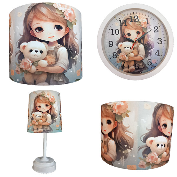 لوستر و آباژور کودک مدل عروسک کد 40229 به همراه چراغ خواب و ساعت