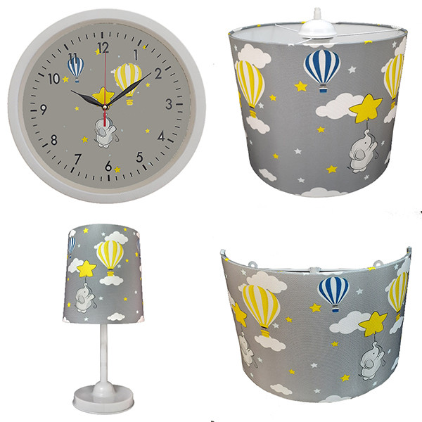 لوستر و آباژور کودک مدل فیل و بالن کد 40221 به همراه چراغ خواب و ساعت مجموعه 4 عددی