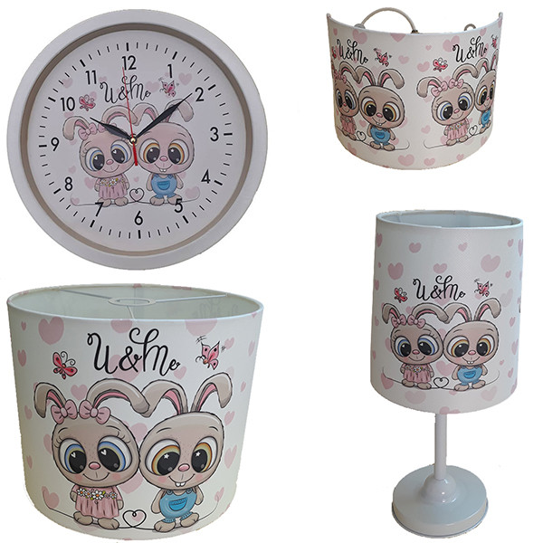 لوستر و آباژور و چراغ خواب کودک مدل کیتی کد 40221 به همراه ساعت مجموعه 4 عددی
