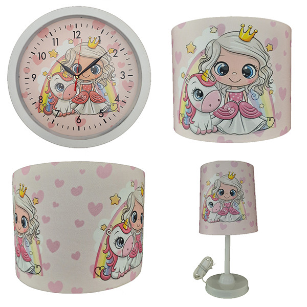 چراغ خواب اتاق کودک مدل پرنسس کد 4030405 به همراه آباژور و لوستر و ساعت