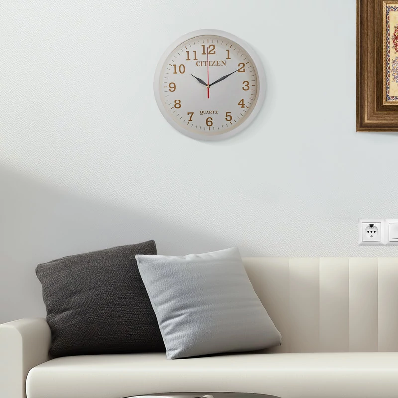 ساعت دیواری کد 4020321 مشخصات فنی محصول: ** مشخصات ** ابعاد: 320x320x50 میلیمتر وزن: 0.850 کیلوگرم قطر صفحه: 32 سانتیمتر جنس قاب: پلاستیک نحوه نمایش: عقربهای منبع انرژی: باتری نوع باتری: قلمی AA نمایش زمان: عدد