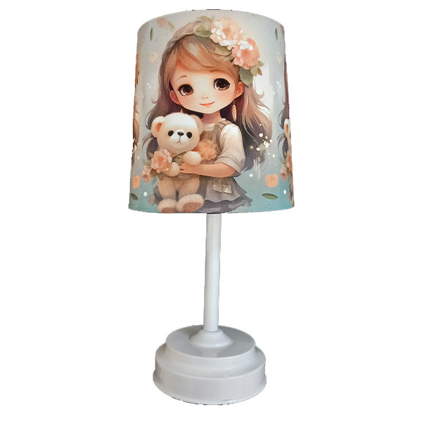 ست اکسسوری اتاق کودک طرح عروسک شامل .لوستر ، آباژور . دیوار کوب و ساعت دیواری می باشد . جنس سازه لوستر و آباژور از فلز و شید آن از طلق نسوز ضخیم و مخمل با رنگ ثابت و کیفیت چاپ عالی می باشد . بهتر است بدانید شید های پارچه ای انتشار دهنده نوری گرم و درخشان تری هستند و حتی در حالت خاموش هم می توانند به فضا گرمای بیشتری انتقال دهند. ساعت دیواری بهمراه موتور آرام گرد و کم مصرف می باشد که در کنار ست لوستر و آباژور محیط دلنشینی را برای اتاق کودک دلبندتان فراهم می کند.