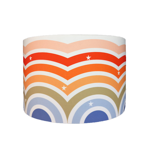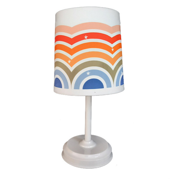 ست اکسسوری اتاق کودک طرح رنگین کمان شامل .لوستر ، آباژور . دیوار کوب و ساعت دیواری می باشد . جنس سازه لوستر و آباژور از فلز و شید آن از طلق نسوز ضخیم و مخمل با رنگ ثابت و کیفیت چاپ عالی می باشد . بهتر است بدانید شید های پارچه ای انتشار دهنده نوری گرم و درخشان تری هستند و حتی در حالت خاموش هم می توانند به فضا گرمای بیشتری انتقال دهند. ساعت دیواری بهمراه موتور آرام گرد و کم مصرف می باشد که در کنار ست لوستر و آباژور محیط دلنشینی را برای اتاق کودک دلبندتان فراهم می کند.