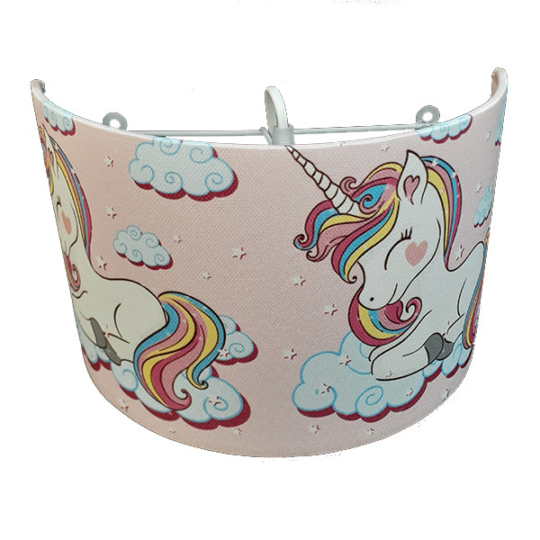 ست اکسسوری اتاق کودک طرح دخترانه تک شاخ شامل .لوستر ، آباژور . دیوار کوب و ساعت دیواری می باشد . جنس سازه لوستر و آباژور از فلز و شید آن از طلق نسوز ضخیم و مخمل با رنگ ثابت و کیفیت چاپ عالی می باشد . بهتر است بدانید شید های پارچه ای انتشار دهنده نوری گرم و درخشان تری هستند و حتی در حالت خاموش هم می توانند به فضا گرمای بیشتری انتقال دهند. ساعت دیواری بهمراه موتور آرام گرد و کم مصرف می باشد که در کنار ست لوستر و آباژور محیط دلنشینی را برای اتاق کودک دلبندتان فراهم می کند.